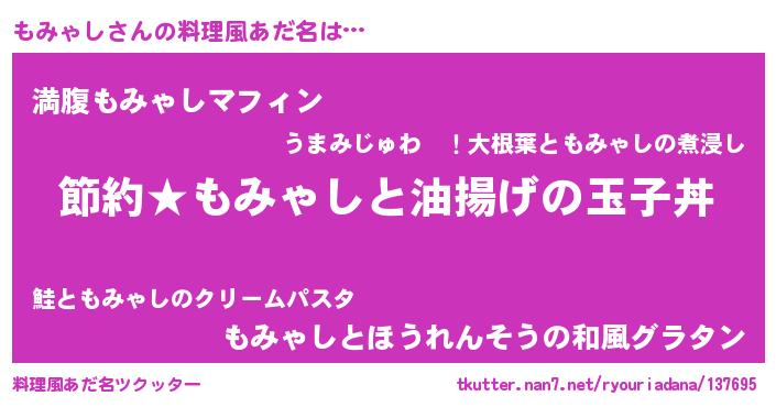 | ファンタジー風あだ名 | 『モミフェル』『モミディッシュ』 |