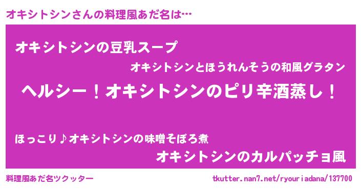 | ピコ太郎風あだ名 | 『オキ史郎』『オコ八郎』『ピオ二郎』 |