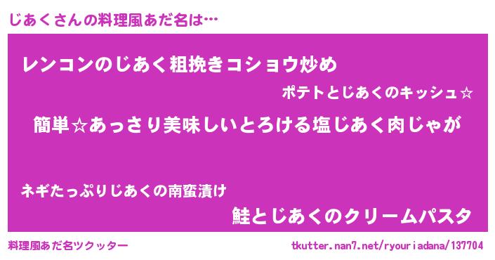 | ヘコむあだ名 | 『じあく(苦笑)』『じあぷりん』 |