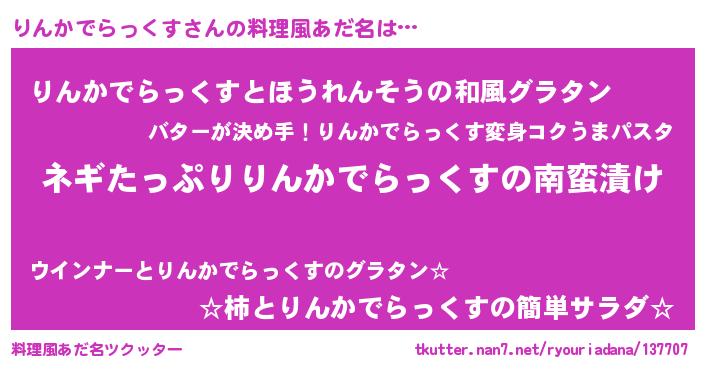 ヘコむあだ名 | 『りんふぇ~』『酢こんぶ』 |