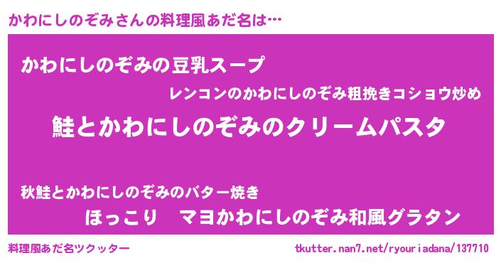 | ヘコむあだ名 | 『かわっぺ』『かわにしのぞみ(笑)』 |