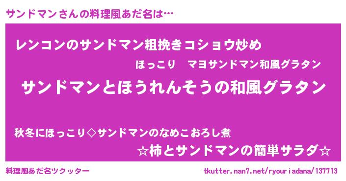 | 男性向けラノベタイトル風あだ名 | 『転生したらサンドマンだった件』 |