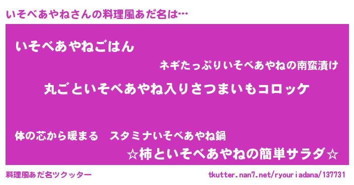| 欧米人風あだ名 | 『ダレノガレいそべあやね』 |