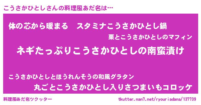 | ヘコむあだ名 | 『こうもー』『つくし』『こう太郎』 |
