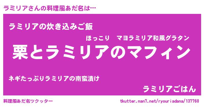 | 男性向けラノベタイトル風あだ名 | 『はたらくラミリアさま!』 |