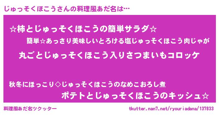 | ヘコむあだ名 | 『じゅぷりん』『じゅっそくほこう(笑)』 |