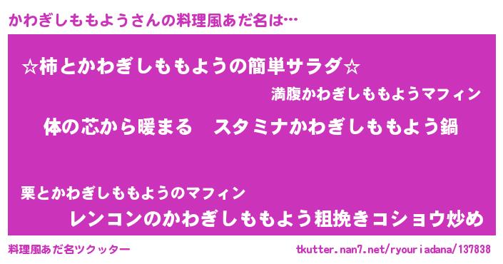 | 意味不明あだ名 | 『かわぎしももようフォーエバー』 |