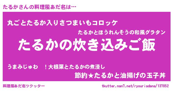 | 恥ずかしいあだ名 | 『プリティーたるか』『たるっちょ』 |