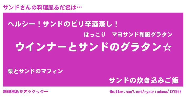 | 男性向けラノベタイトル風あだ名 | 『やはりサンドの青春ラブコメはまちがっている 』 |