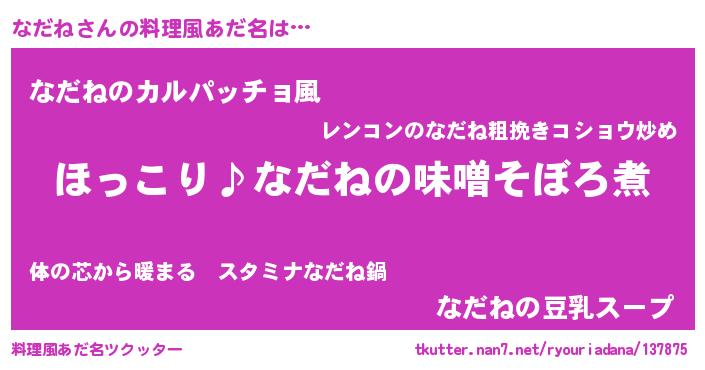| 男性向けラノベタイトル風あだ名 | 『なだねの憂鬱』『魔弾の王となだね』 |