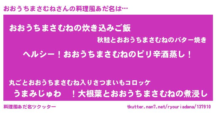 | 男性向けラノベタイトル風あだ名 | 『Re:おおうちまさむねから始める異世界生活』 |