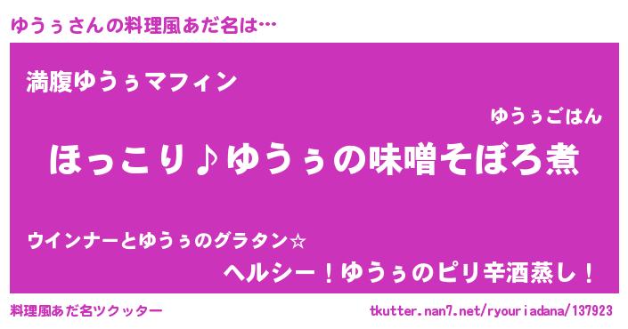 意味不明あだ名 | 『ペロリンゆうぅ』『永久保存ゆうぅ』 |
