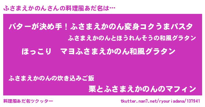 | 男性向けラノベタイトル風あだ名 | 『この素晴らしい世界にふさまえかのんを!』 |