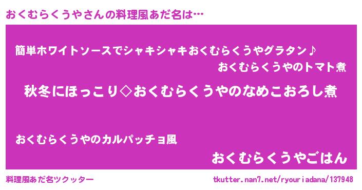 | ヘコむあだ名 | 『おくぷりん』『おくむらくうや(笑)』 |