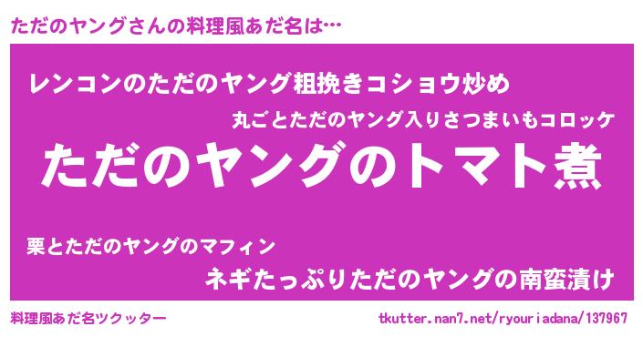 | ヒーロー風カッコイイあだ名 | 『正義の使者ただのヤング』 |