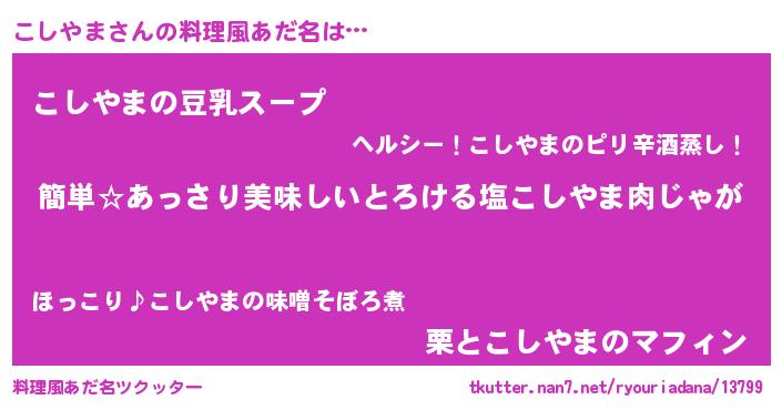 | 胡散臭い通販商品みたいなあだ名 | 『前代未聞の健康食品…その名も「こしやま」』 |
