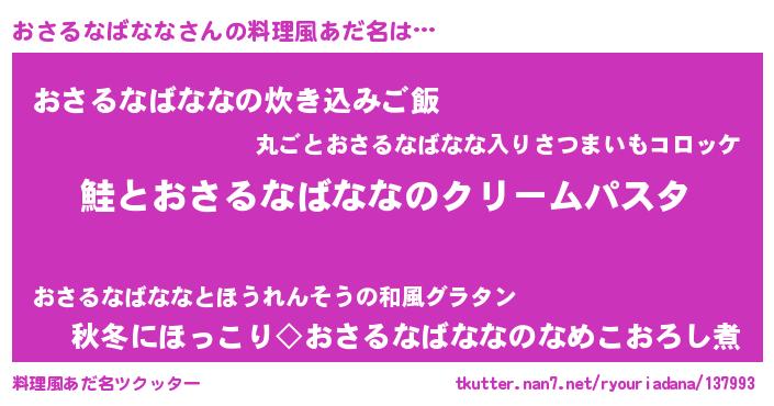 | ヘコむあだ名 | 『おさるなばなな(小並感)』『おさふぇ~』 |