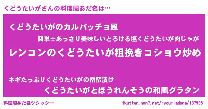 | 意味不明あだ名 | 『自称くどうたいが』 |