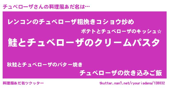 | 女子向けラノベタイトル風あだ名 | 『死神チュべローザの再婚』 |