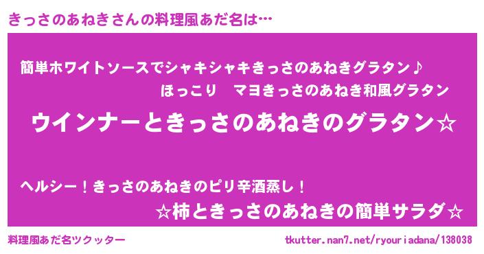 | 意味不明あだ名 | 『きっさのあねきフォーエバー』 |