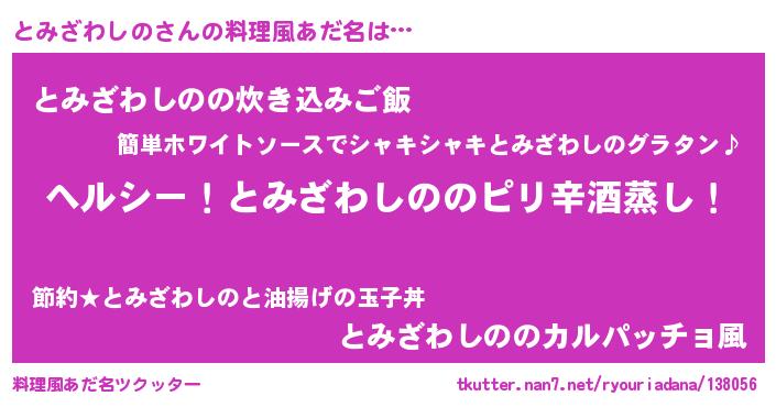 | 男性向けラノベタイトル風あだ名 | 『Re:とみざわしのから始める異世界生活』 |