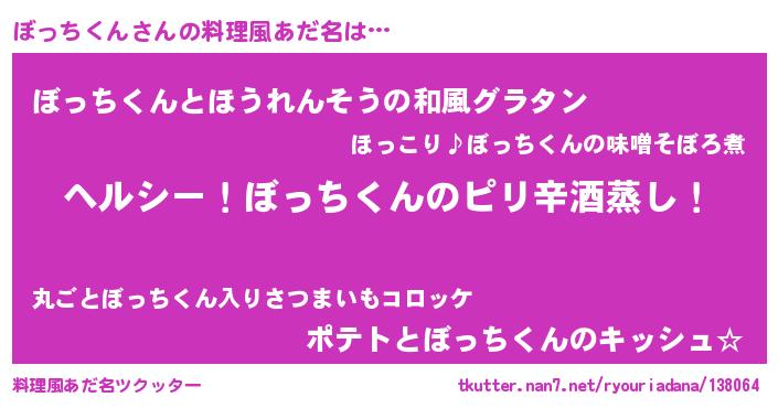 | 男性向けラノベタイトル風あだ名 | 『Re:ぼっちくんから始める異世界生活』 |
