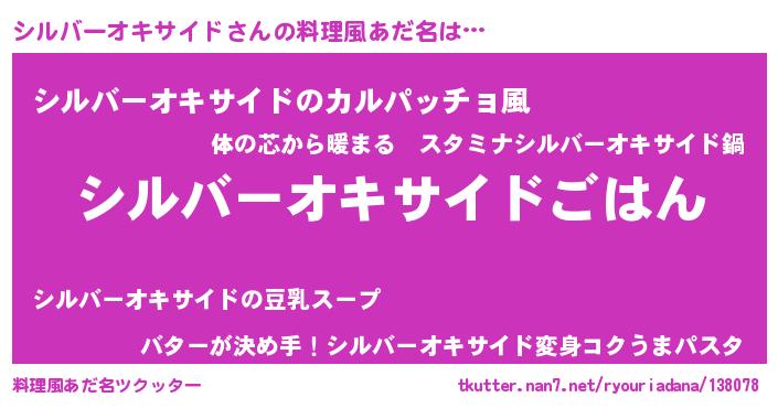 | 男性向けラノベタイトル風あだ名 | 『シルバーオキサイドスレイヤー』 |