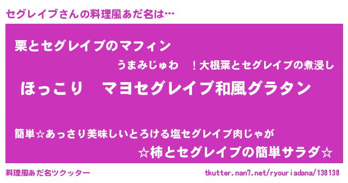 | 男性向けラノベタイトル風あだ名 | 『この素晴らしい世界にセグレイブを!』 |