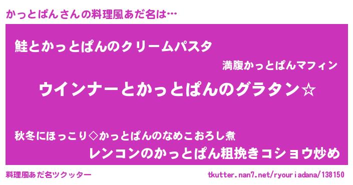 | 男性向けラノベタイトル風あだ名 | 『うちの娘の為ならば、俺はもしかしたらかっとぱんも倒せるかもしれない。』 |