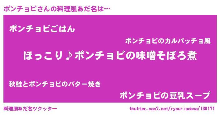 | ヒーロー風カッコイイあだ名 | 『スーパーポンチョビ』『黄金騎士ポン』 |