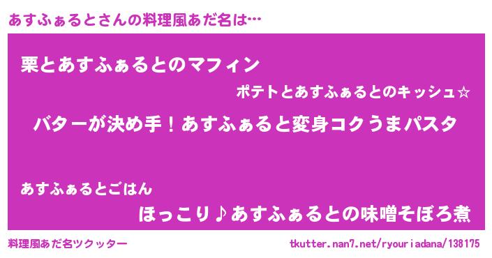 | ヘコむあだ名 | 『あすふぇ~』『あすぷりん』 |