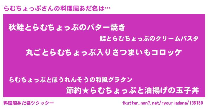 | 女子向けラノベタイトル風あだ名 | 『乙女ゲームの破滅フラグしかない悪役らむちょっぷに転生してしまった…』 |