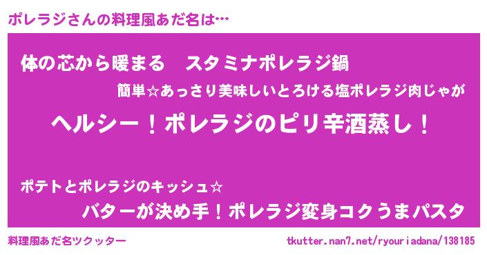 | 男性向けラノベタイトル風あだ名 | 『Re:ポレラジから始める異世界生活』 |