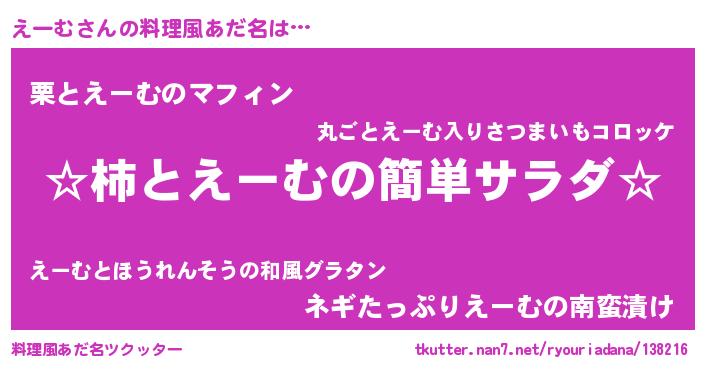 | 男性向けラノベタイトル風あだ名 | 『緋弾のエーム』『はたらくえーむさま!』 |