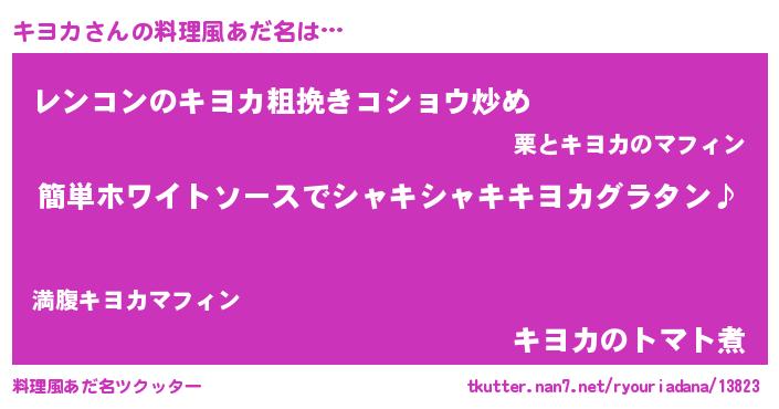 | 男性向けラノベタイトル風あだ名 | 『キヨカの嫁は女の子じゃないと思った?』 |