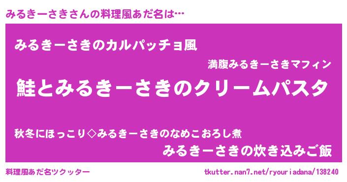 | ヘコむあだ名 | 『みるきーさき(小並感)』『みるにー』 |