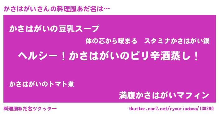 | 意味不明あだ名 | 『自称かさはがい』『永久保存かさはがい』 |