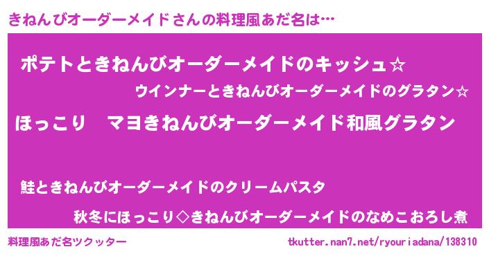 | 男性向けラノベタイトル風あだ名 | 『この素晴らしい世界にきねんびオーダーメイドを!』 |