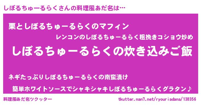 | 女子向けラノベタイトル風あだ名 | 『男装しぼるちゅーるらくの憂鬱な任務』 |