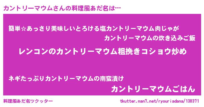 | 女子向けラノベタイトル風あだ名 | 『カントリーマウムアンティーク』 |