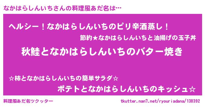 | ヘコむあだ名 | 『なかはらしんいち(震え声)』『なかぷりん』 |
