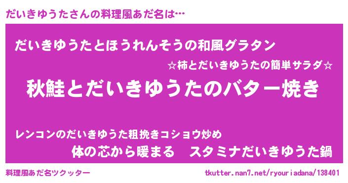 | ヘコむあだ名 | 『だいきゆうた(小並感)』『牛乳』 |