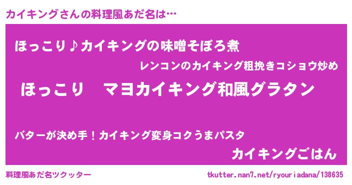 | 意味不明あだ名 | 『住所不定無職カイキング(77歳)』 |