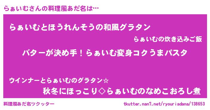 | 女子向けラノベタイトル風あだ名 | 『らぁいむ恋絵巻』『らぁいむ伯爵の花嫁』 |