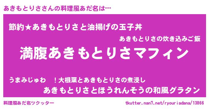 | 意味不明あだ名 | 『永久保存あきもとりさ』 |