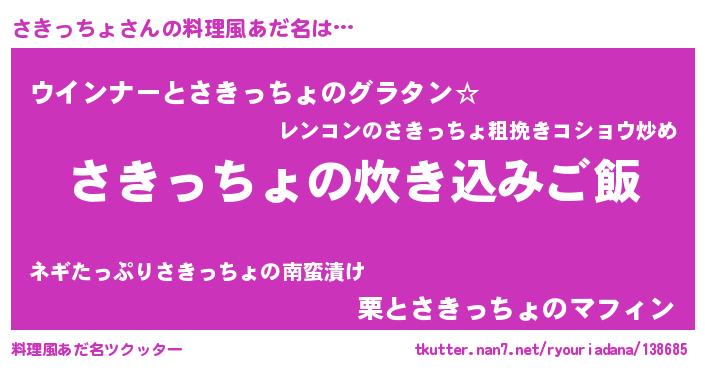 | ヘコむあだ名 | 『レバニラ』『さきにゅー』『さきを』 |