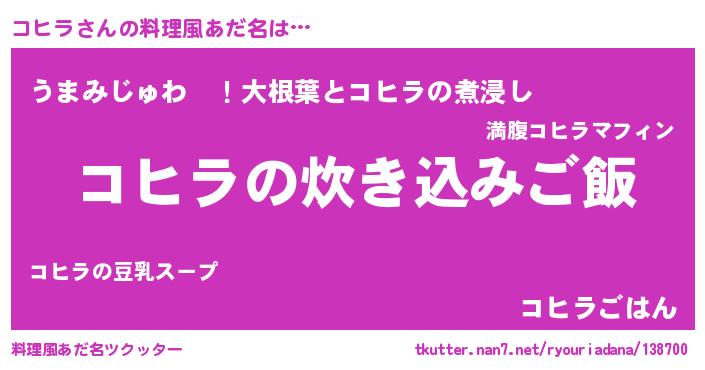 | ヘコむあだ名 | 『酢こんぶ』『コヒラ(笑)』 |