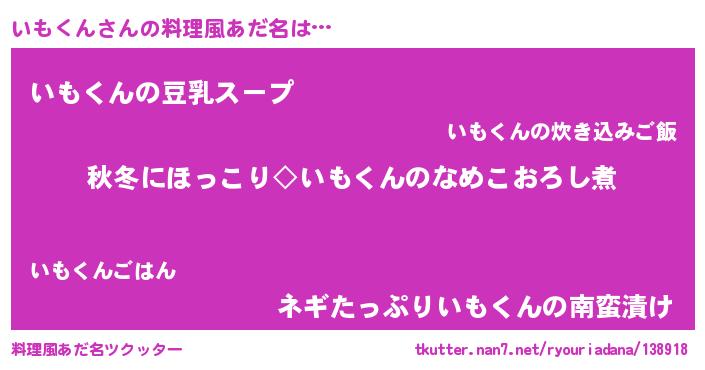 | 胡散臭い通販商品みたいなあだ名 | 『全米が絶賛したサプリメント…その名も「いもくん」』 |