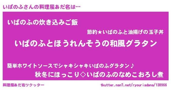 | 意味不明あだ名 | 『もやし科いばのふ属』『自称いばのふ』 |