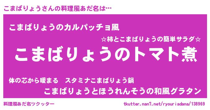 | ヒーロー風カッコイイあだ名 | 『正義の使者こまばりょう』 |